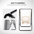 Enjoy a relaxing experience with this durable and space-saving hammock chair stand. Designed with a secure double-hook system, this stand accommodates most hanging chairs while occupying minimal space. Its A-frame design provides exceptional stability and durability, making it perfect for both indoor and outdoor use. Crafted from weather-resistant, powder-coated steel, it prevents rust and ensures long-lasting support with a maximum weight capacity of 600 lbs. Easy to assemble with all necessary hardware included, this stand lets you set up your perfect relaxation spot in minutes.